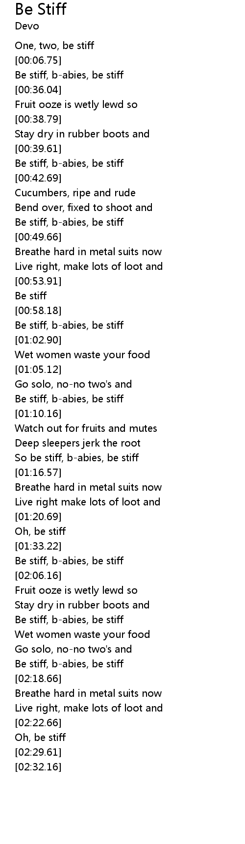 | [02:24.56] | Oh, be stiff |