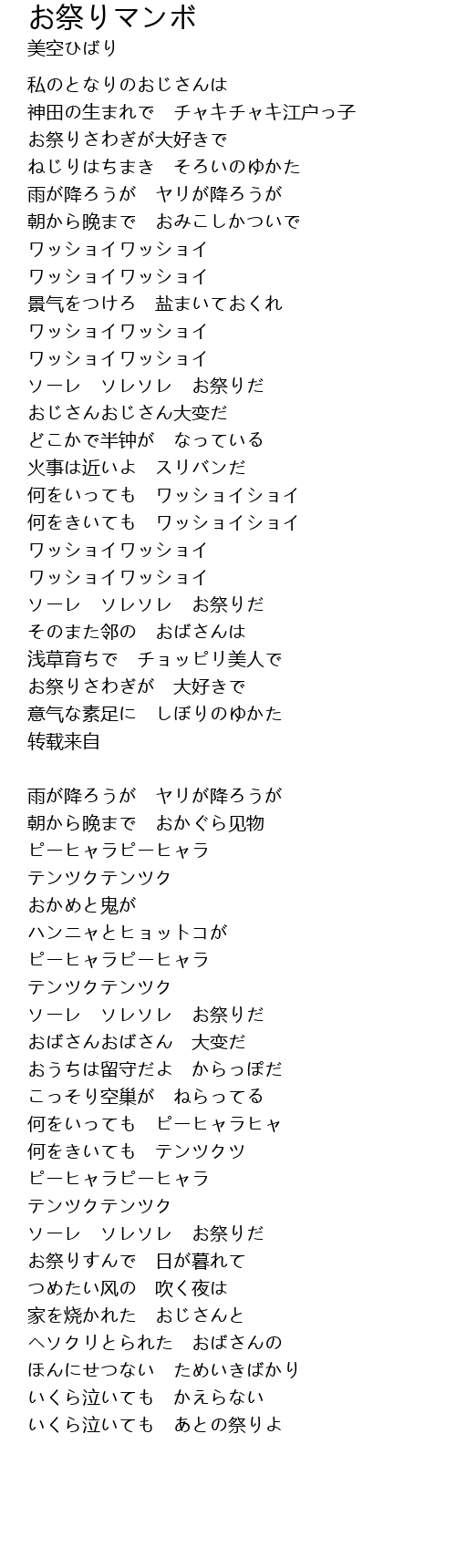 | Song | お祭りマンボ |