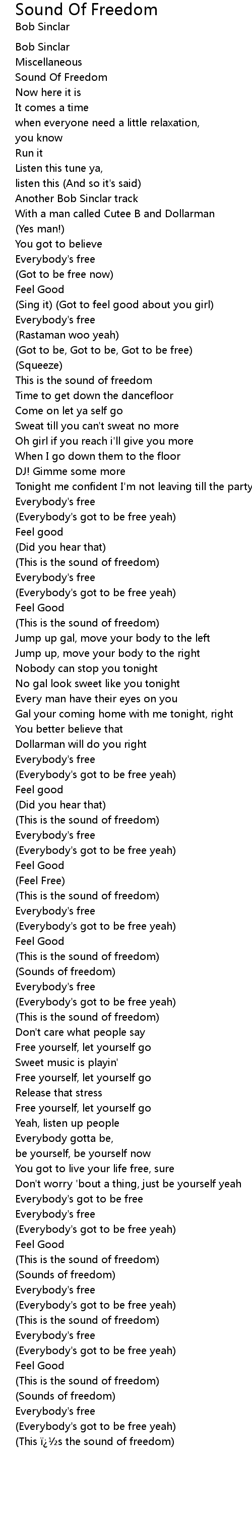 | Everybody' s got to be free yeah | |