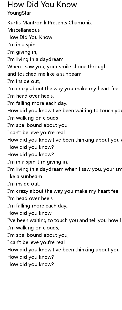 How did you know I've been thinking about you, and dreaming of your kiss? |