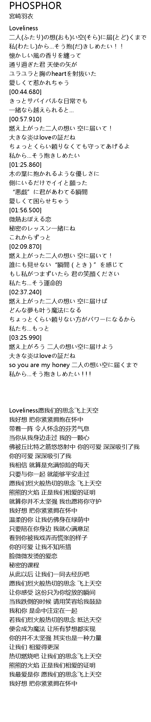 | [03:39.750] | so you are my honey 二人の想い空に届くまで |