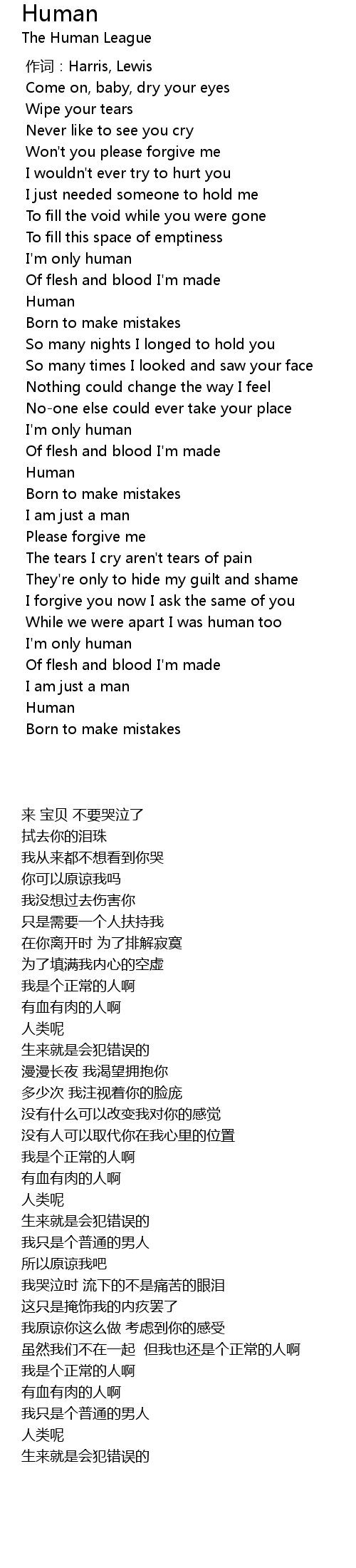 | [01:17.809] | I'm only human |