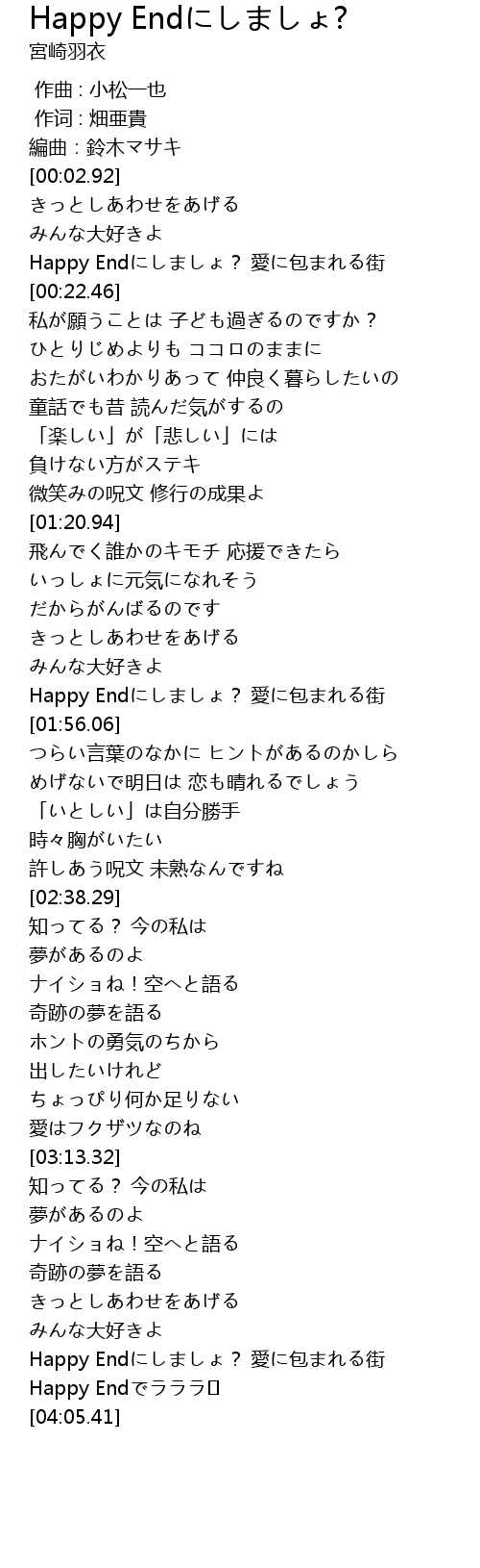 | [04:01.95] | Happy Endでラララ♪ |