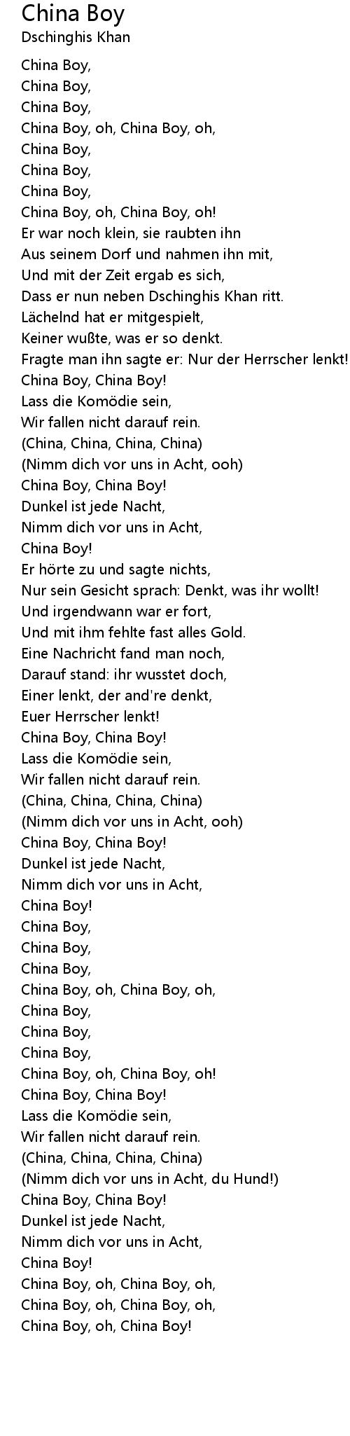 | [03:50.770] | China Boy, oh, China Boy, oh, |
