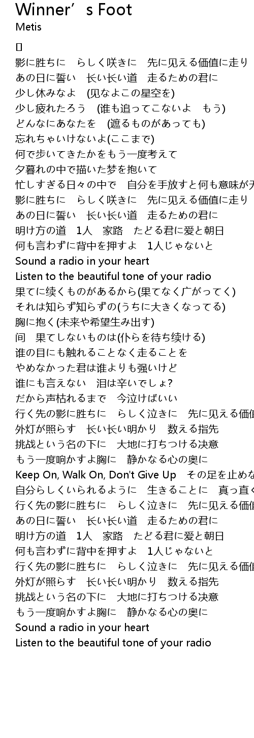 | Keep On, Walk On, Don't Give Up その足を止めないでよ | |