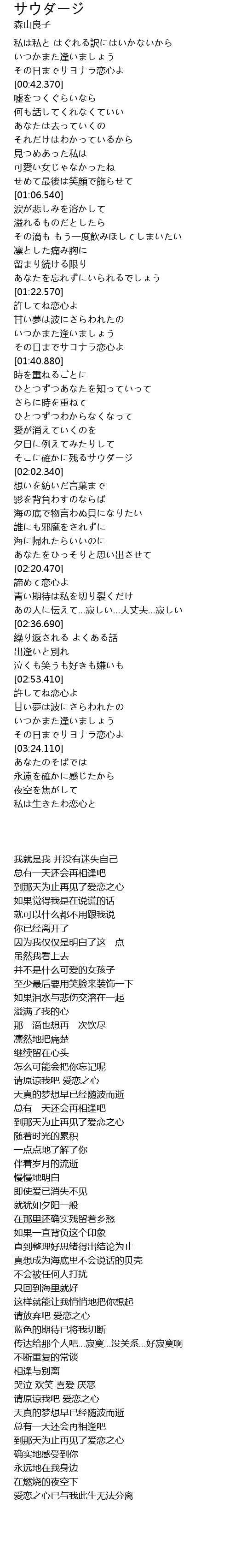 | [02:28.970] | あの人に伝えて…寂しい…大丈夫…寂しい |