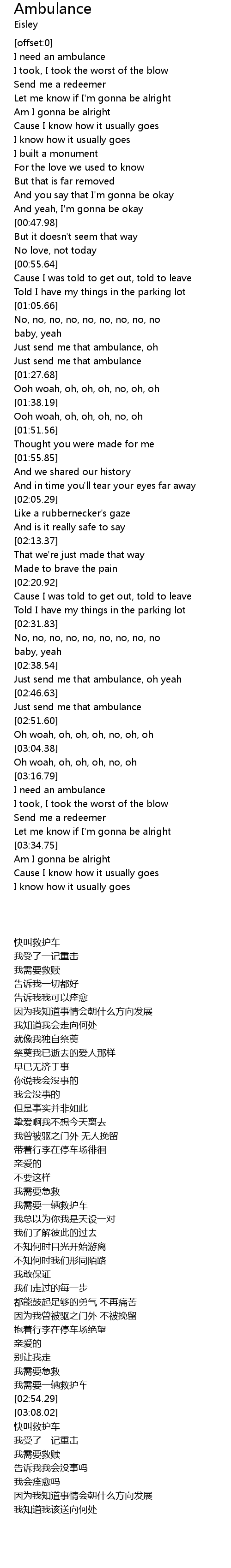 Just send me that ambulance, oh |