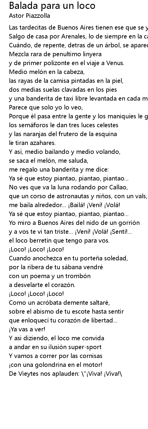 | y a vos te vi tan triste... ¡Vení! ¡Volá! ¡Sentí!... | |