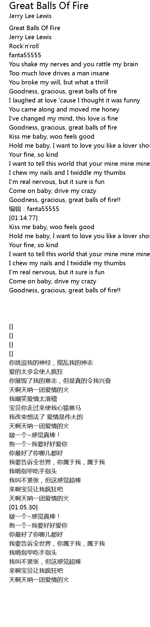 | [00:22.33] | Goodness, gracious, great balls of fire |