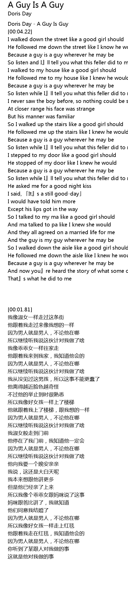 | [00:01.81] | Doris Day A Guy Is Guy |