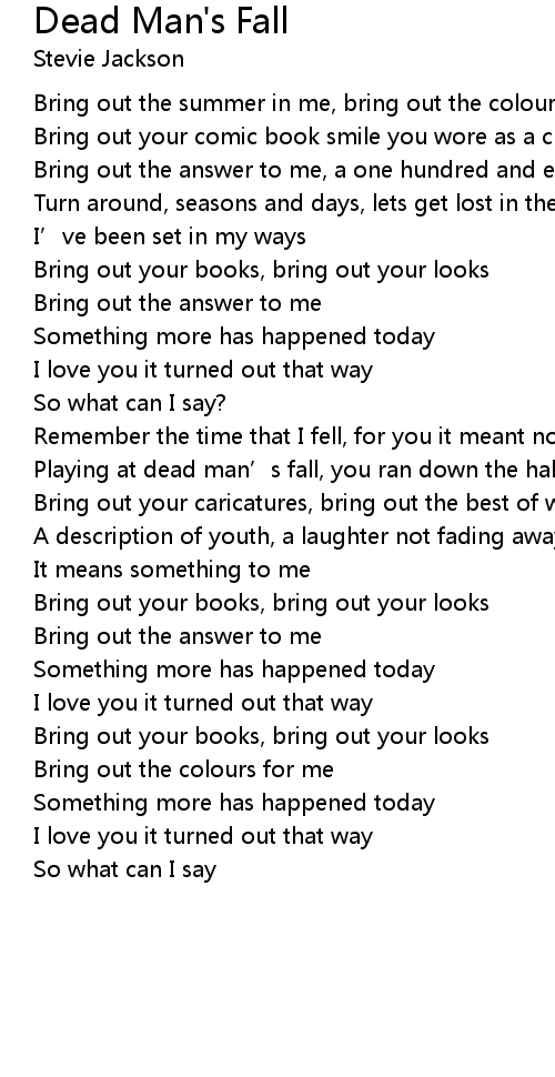 | Playing at dead man' s fall, you ran down the hall | |