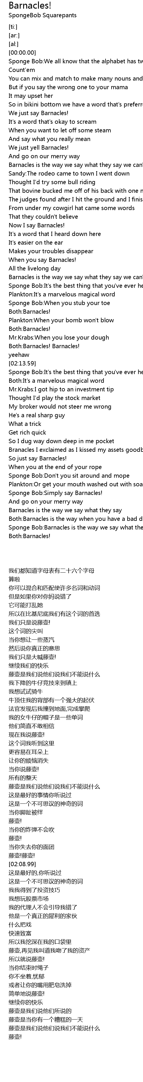 Sponge Bob:Barnacles is the way we say what they say we can't say |