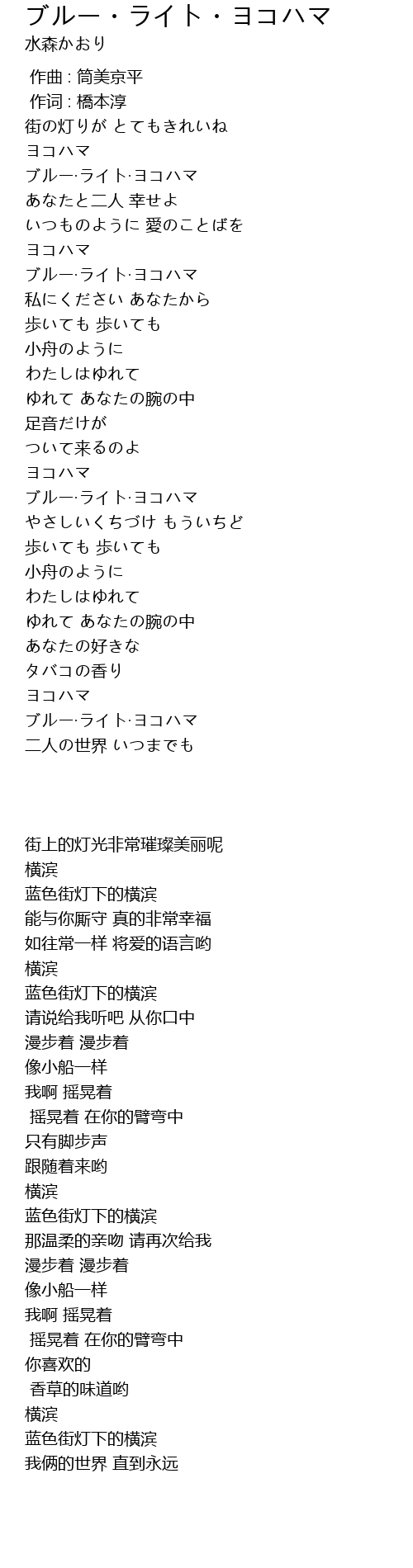 | [00:46.82] | ブルー·ライト·ヨコハマ |