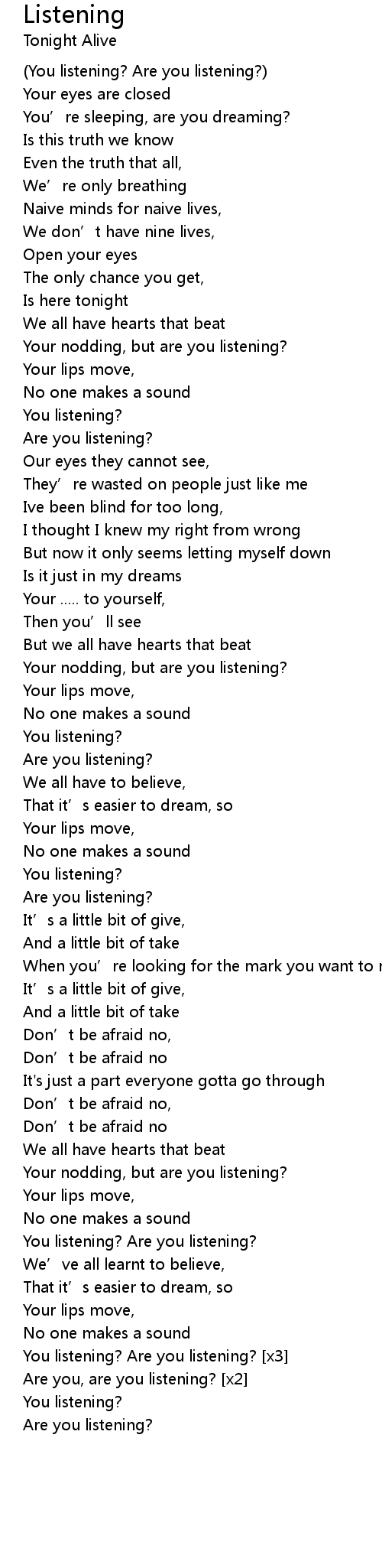 | Are you, are you listening? x2 | |