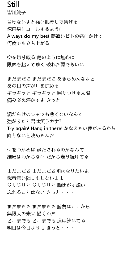 | まだまださ まだまださ あきらめんなよと | |