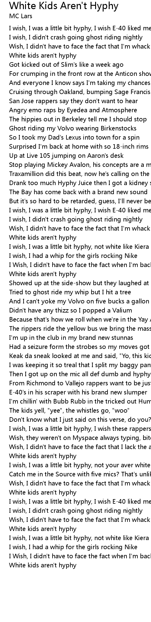 I wish, I was a little bit hyphy, not white like Kiera Knightly