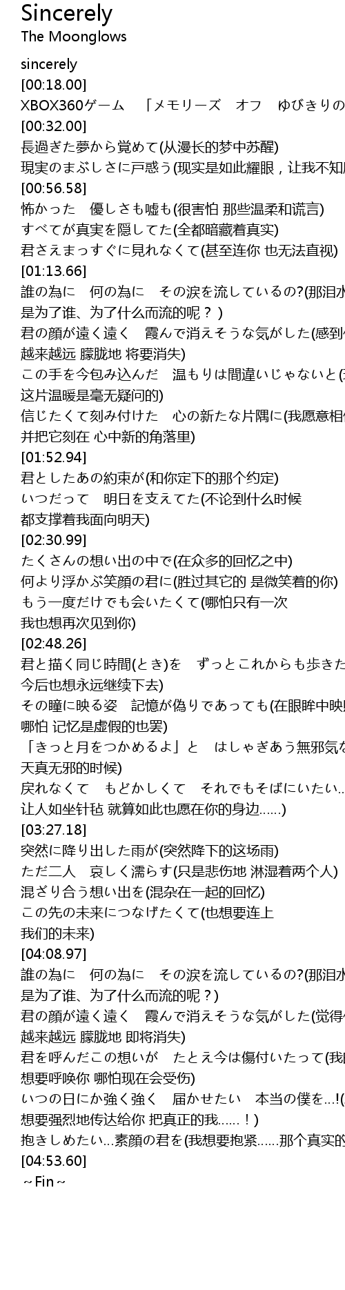 | [00:00.00] | sincerely |