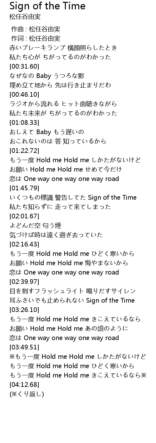| [01:46.76] | いくつもの標識 警告してた Sign of the Time |