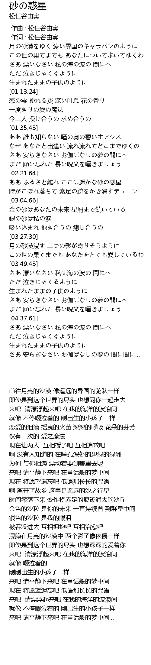 | [02:43.59] | ああ ふるさと離れ ここは遥かな砂の惑星 |