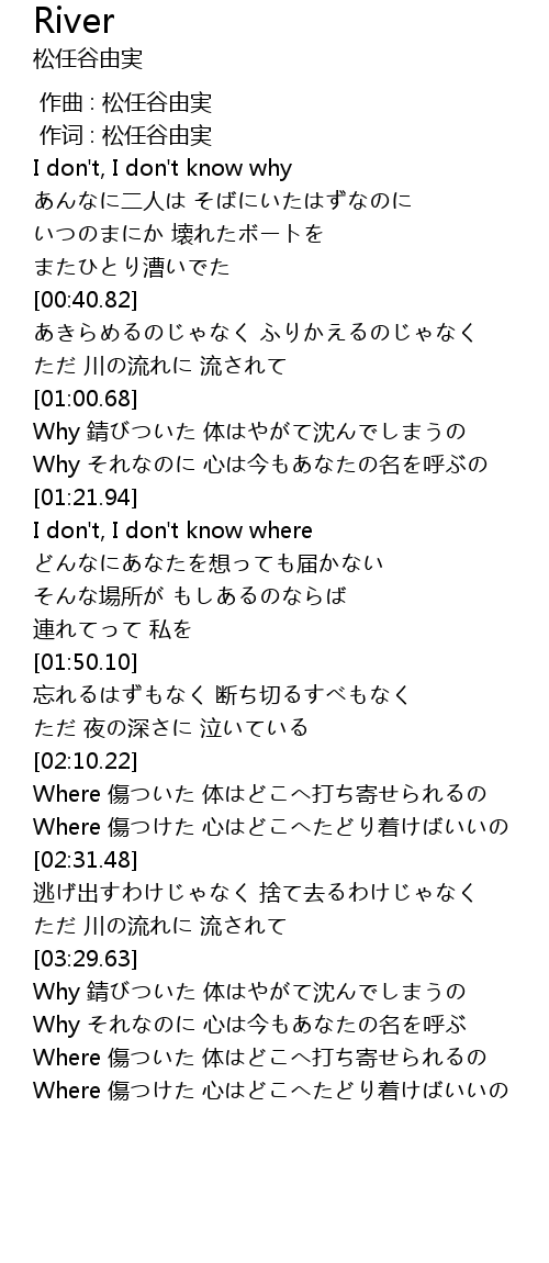 | [01:01.04] | Why 錆びついた 体はやがて沈んでしまうの |