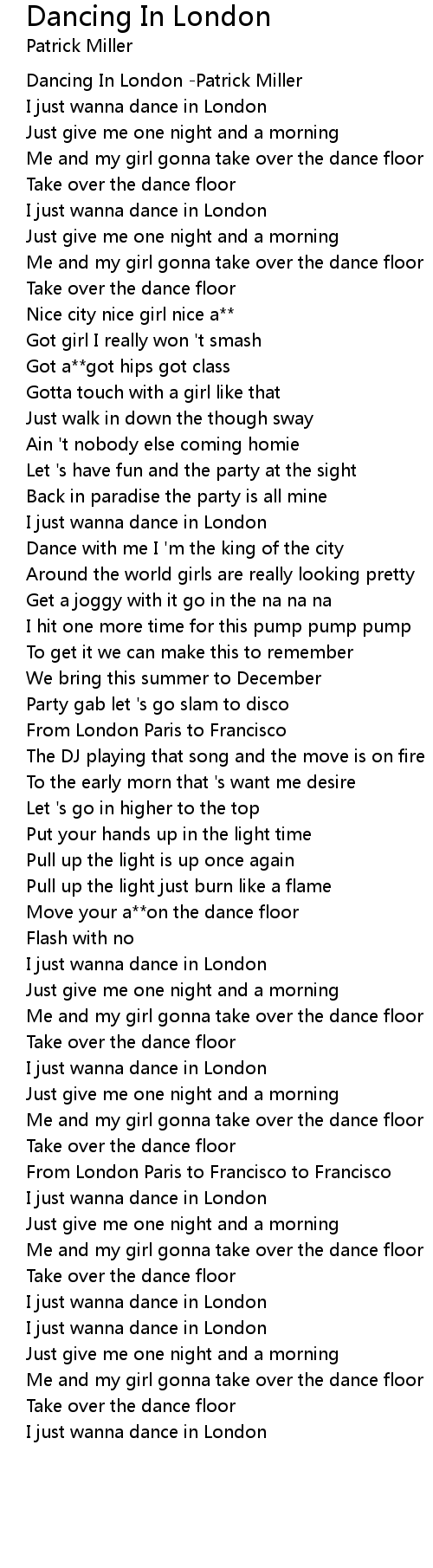 I just wanna dance in London |