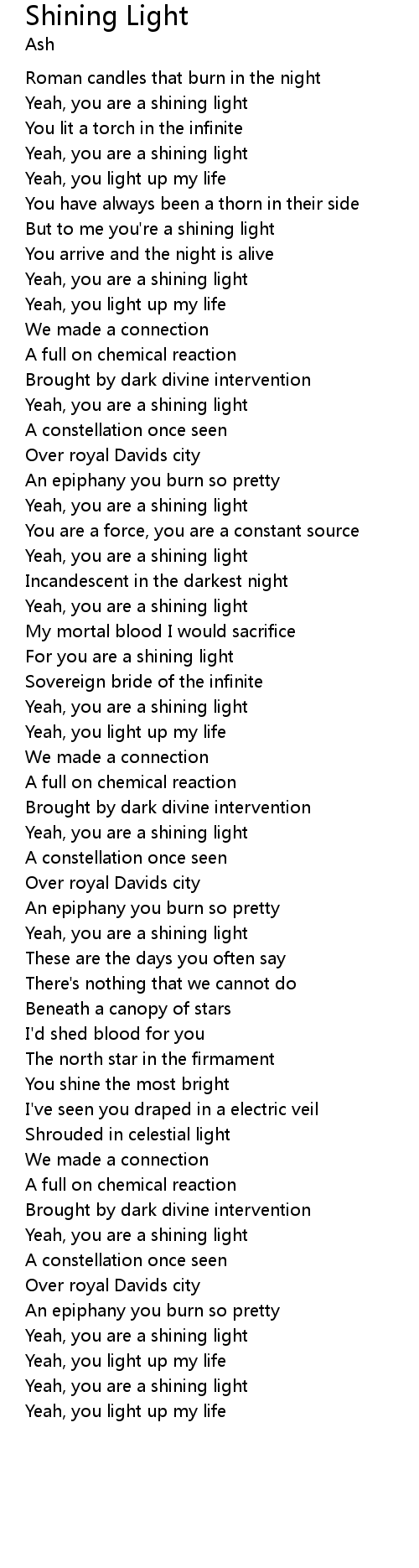 For you are a shining light |