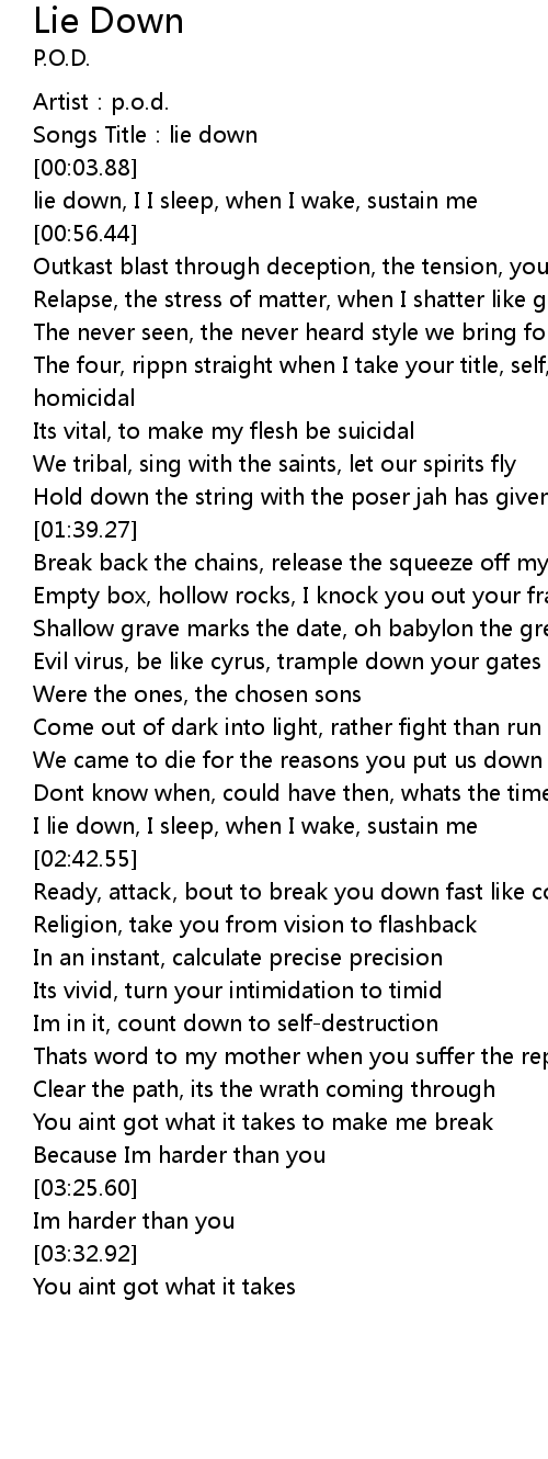 | [01:41.40] | Break back the chains, release the squeeze off my veins |