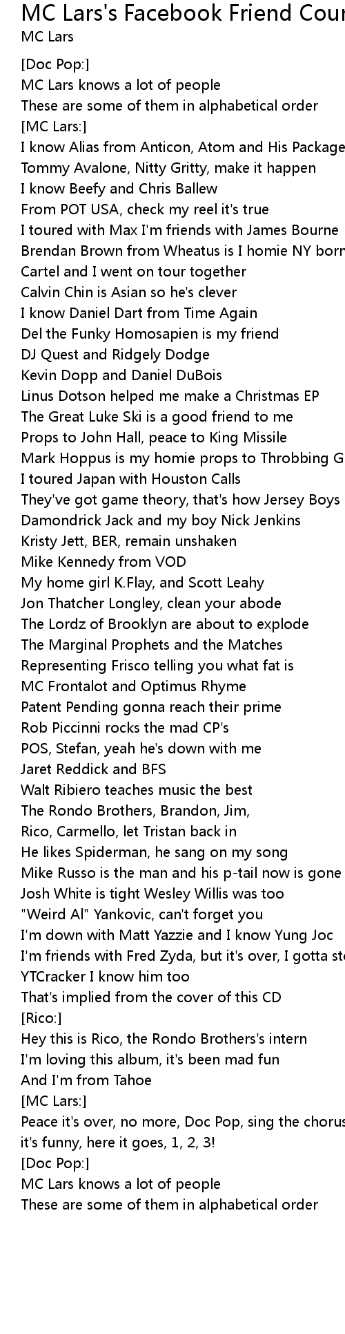 MC Lars's Facebook Friend Count > Your Facebook Friend Count Lyrics