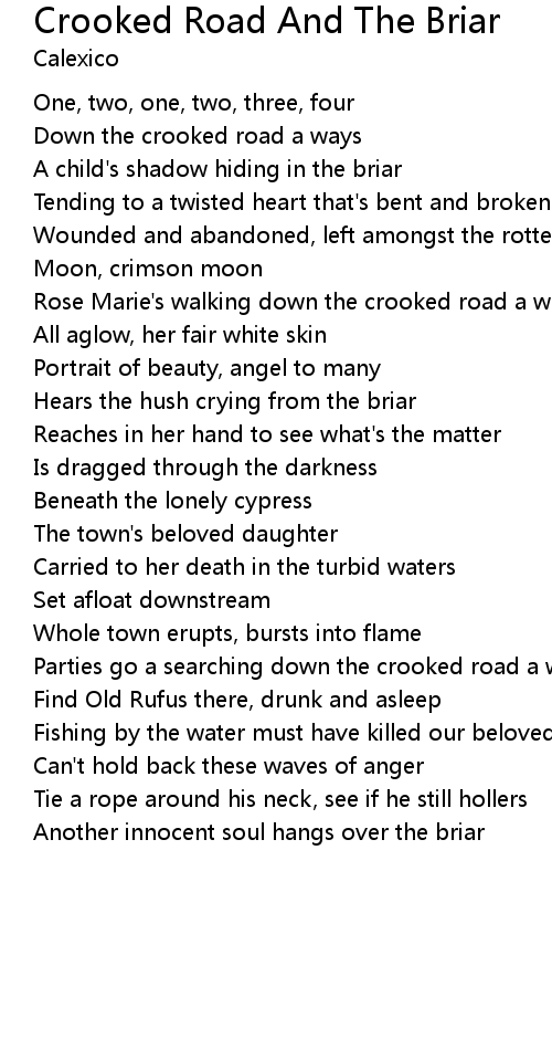 Down the crooked road a ways |