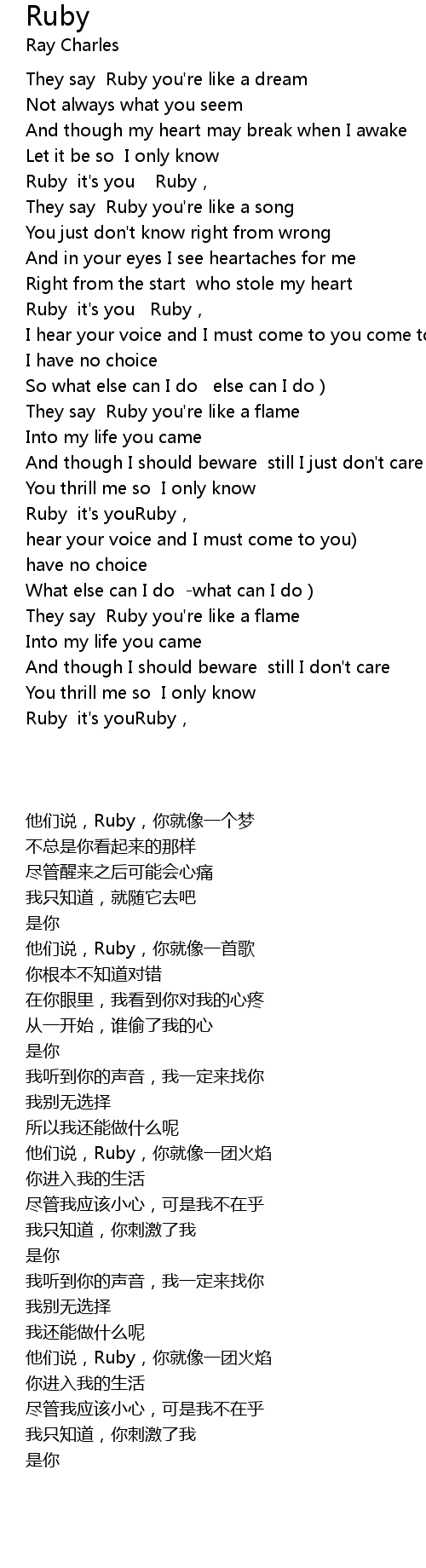 | [00:45.96] | Ruby it' s you Ruby, |