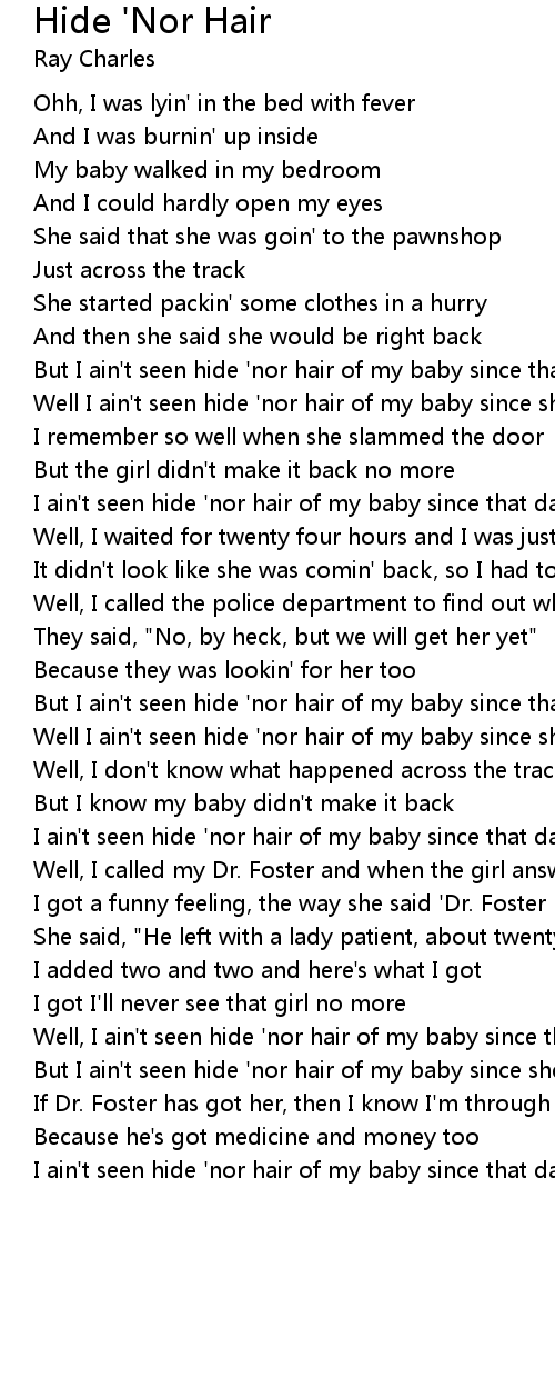 Well, I ain't seen hide 'nor hair of my baby since that day, yeah