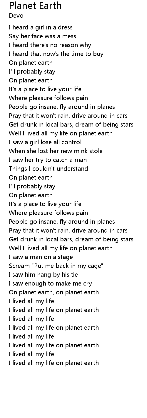 Well I lived all my life on planet earth |