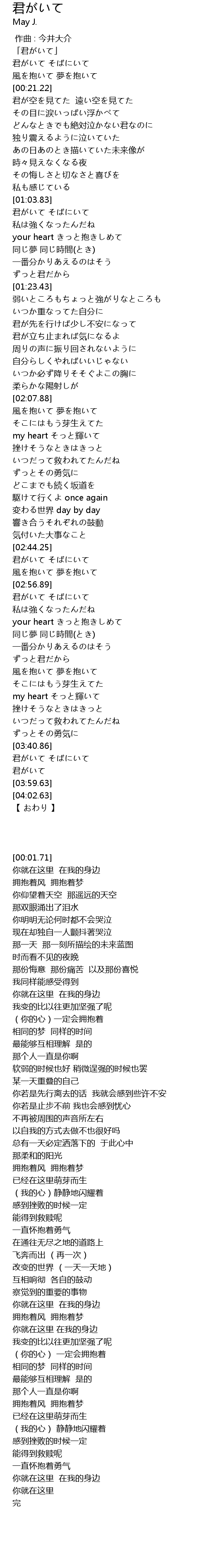 | [00:01.71] | 「君がいて」 |
