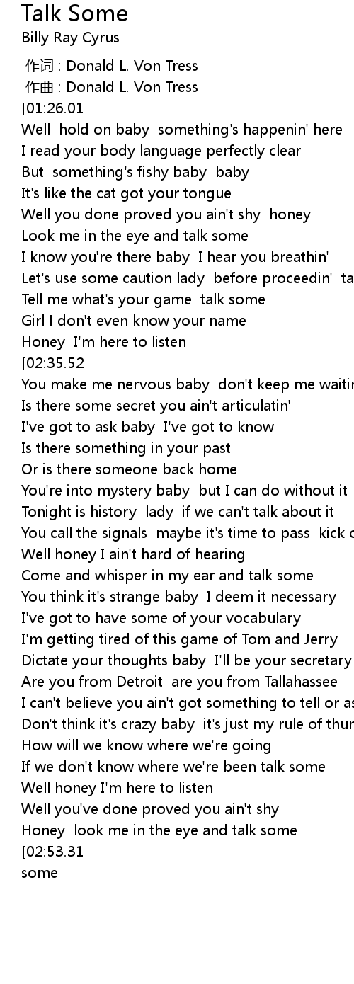 | [02:43.13] | Honey look me in the eye and talk some |