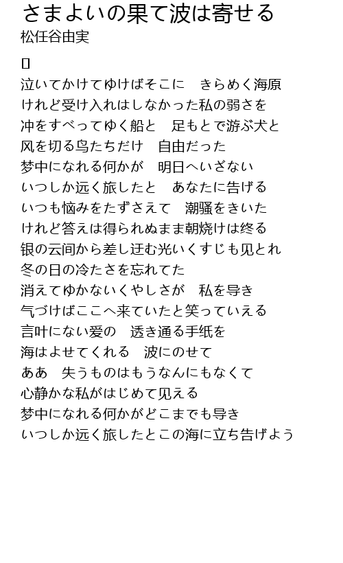 | 泣いてかけてゆけばそこに きらめく海原 | |