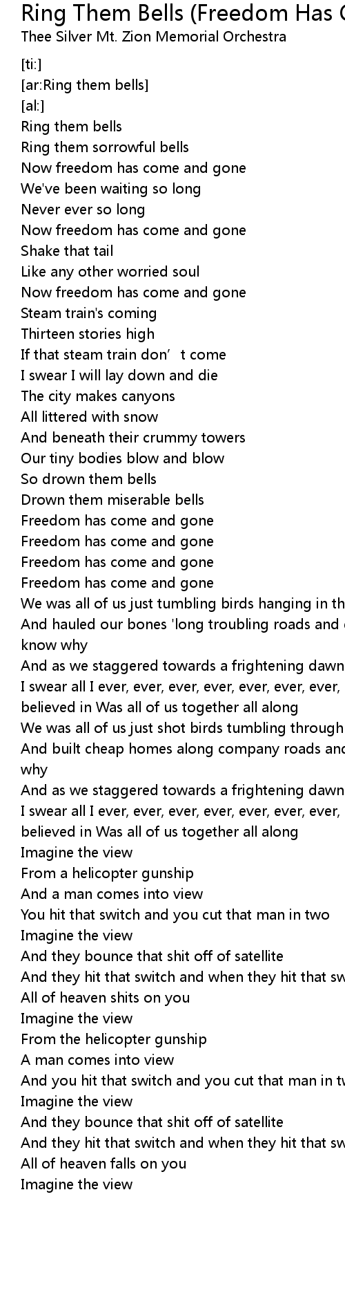 | Song | Ring Them Bells (Freedom Has Come and Gone) |