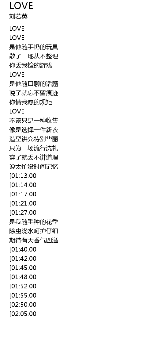 | [02:18.00][01:13.00] | LOVE |