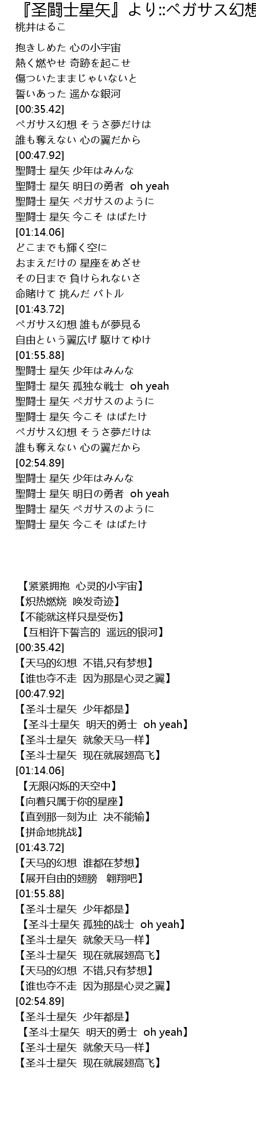 | [01:46.17] | ペガサス幻想 誰もが夢見る |