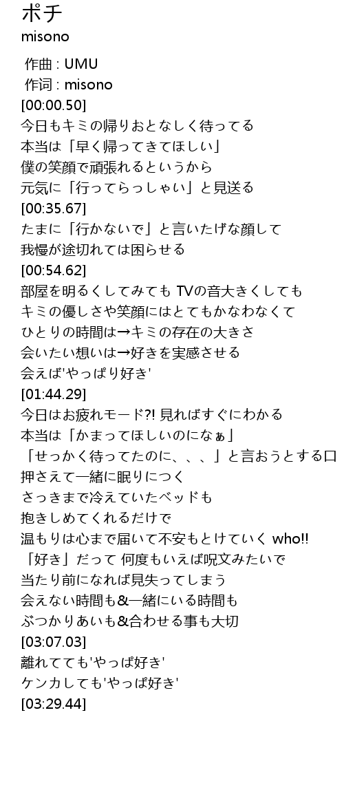 | [00:00.016] | 作词 : misono |