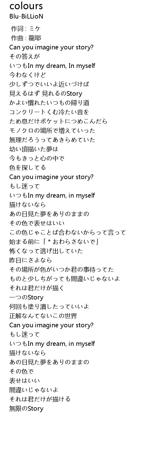 | [01:52.96] | この色じゃことば合わないからって言って |