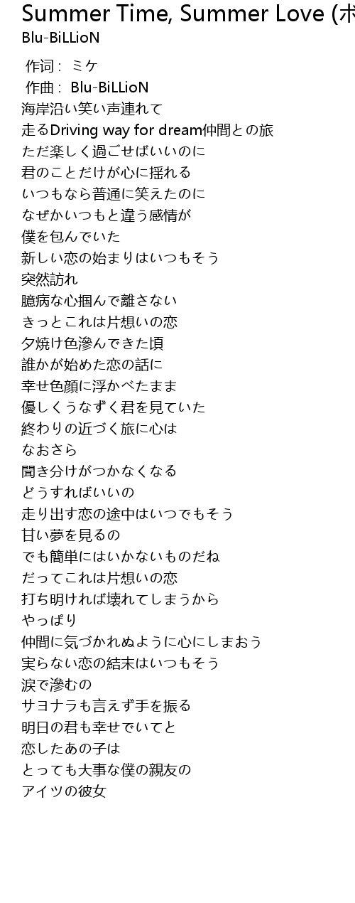 | Song | Summer Time, Summer Love (ボーナストラック) |