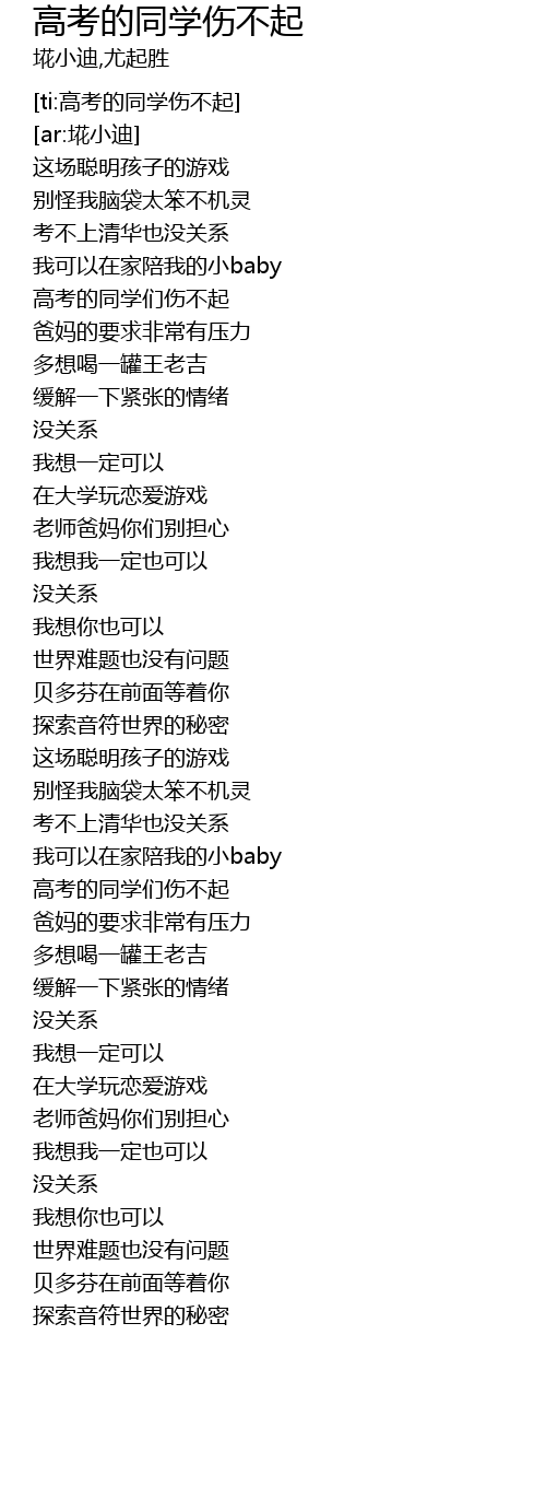 | [02:03.397] | gao kao de tong xue men shang bu qi |