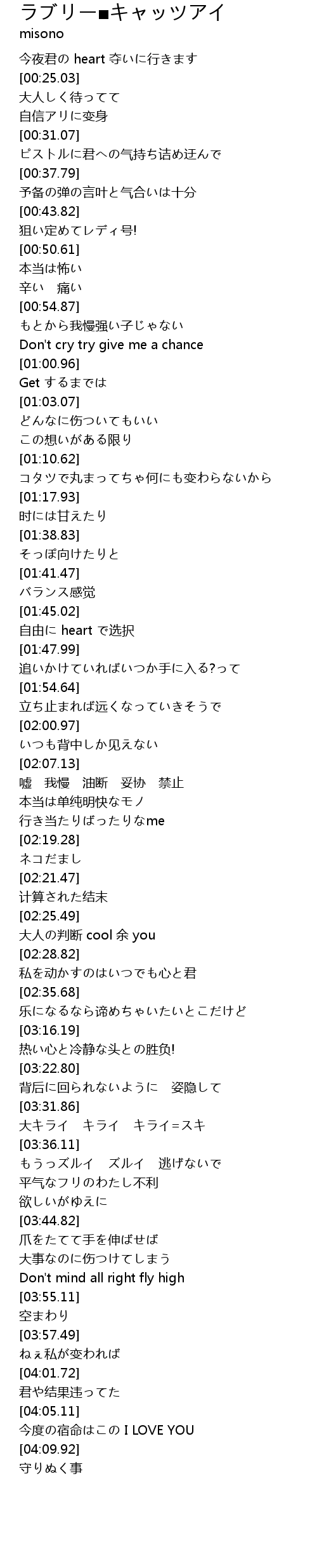 | [03:36.63] | もうっズルイ ズルイ 逃げないで |