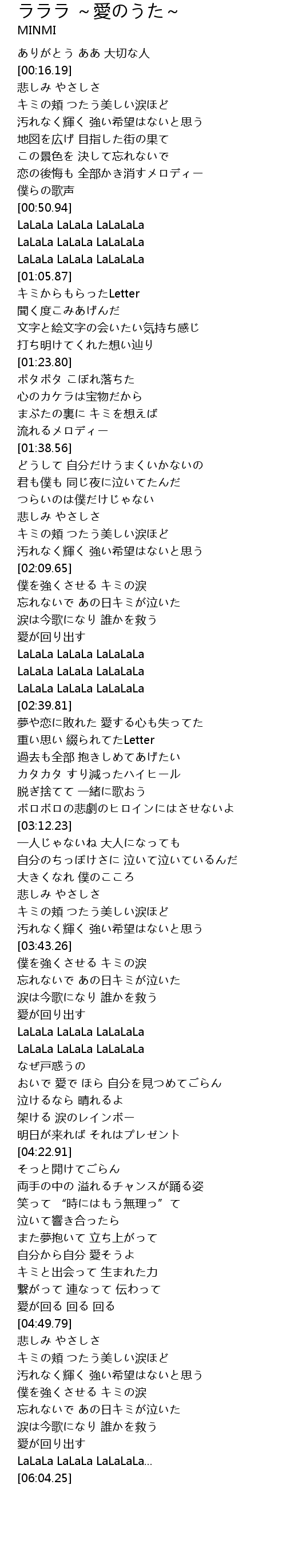 | Song | ラララ ~愛のうた~ |