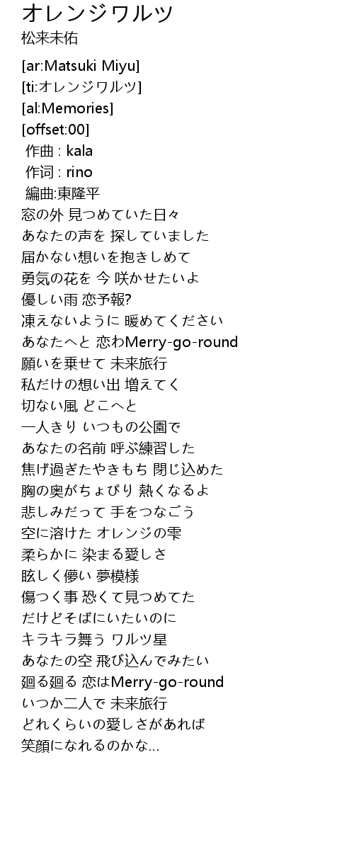 | [00:46.50] | あなたへと 恋わMerry-go-round |