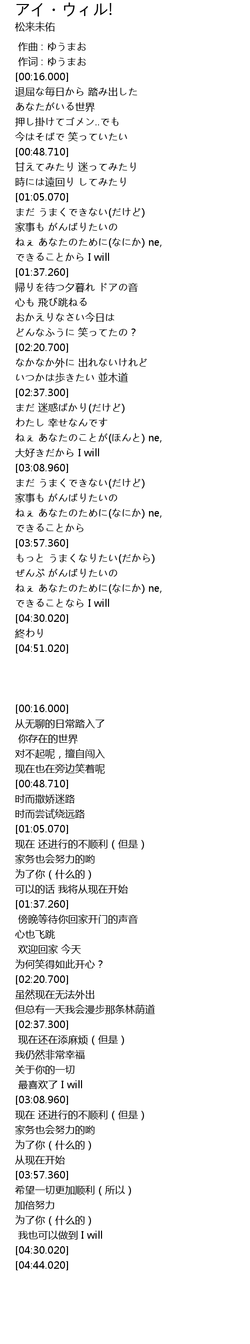 | [03:58.490] | もっと うまくなりたい(だから) |