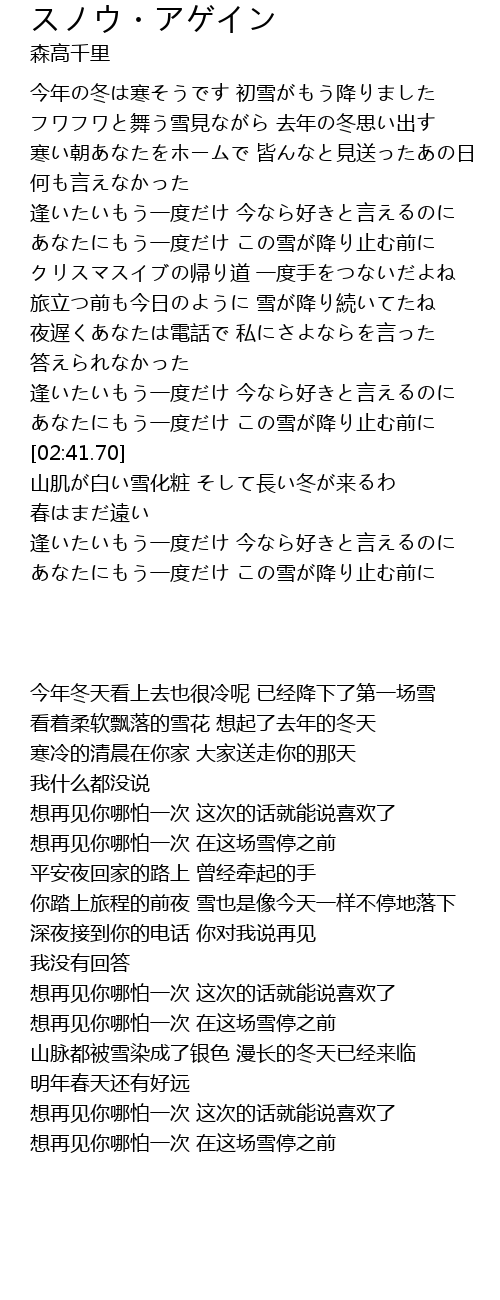 | [03:41.22] | あなたにもう一度だけ この雪が降り止む前に |