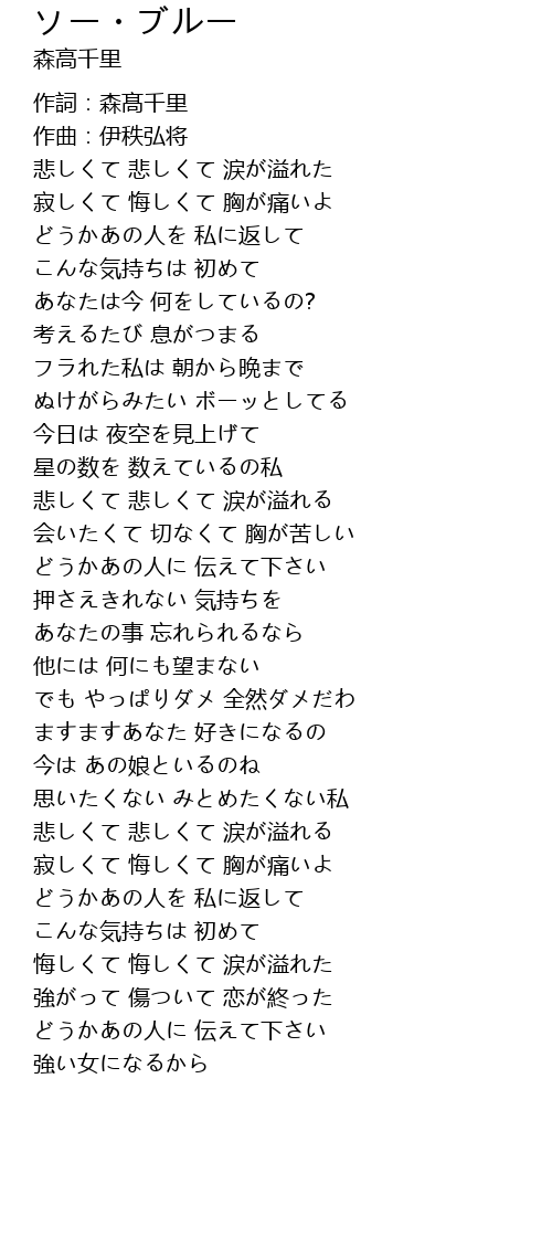 | [02:51.250] | 寂しくて 悔しくて 胸が痛いよ |