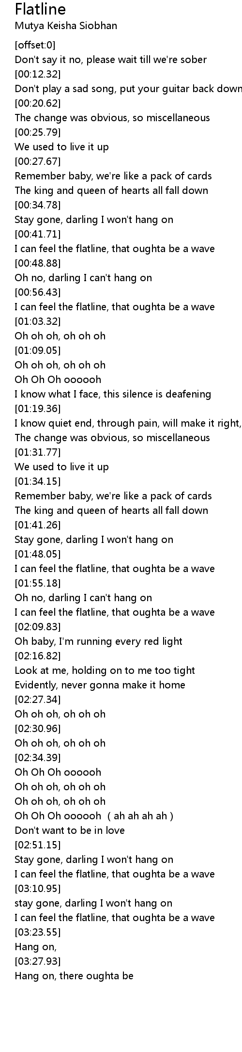 | [00:42.33] | I can feel the flatline, that oughta be a wave |