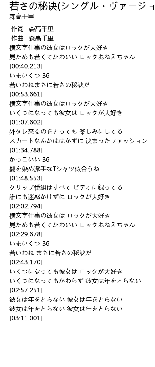 | [03:04.751] | 彼女は年をとらない 彼女は年をとらない |